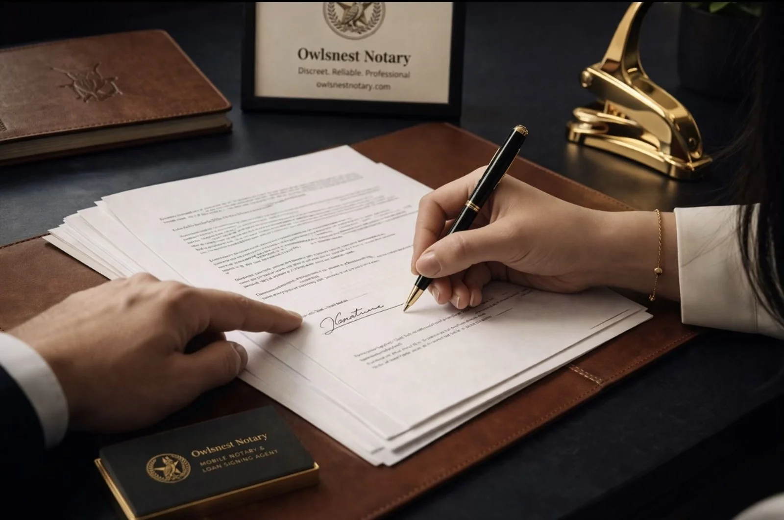 Built on disciplined service and attention to detail, Owlsnest delivers accurate, dependable notarizations at your home, office, or preferred location. Whether handling real estate transactions, legal documents, or time-sensitive requests, every appointment is conducted with precision and professionalism.